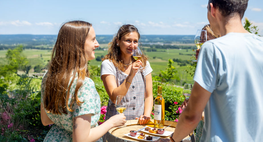 Dominant la vallée de la Dordogne, à 10 minutes de Bergerac, le domaine du Château de Monbazillac invite à la découverte de son nouveau parcours de visite. Il aborde à la fois les précieux vins de Monbazillac et l’histoire du château dans son contexte périgourdin.